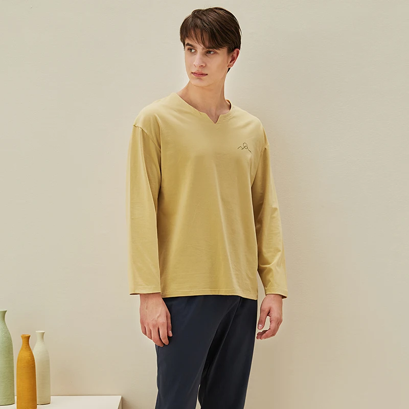 Addition Information of Men's knitted cotton pajamas Spring new arrivals Collarless home service suits