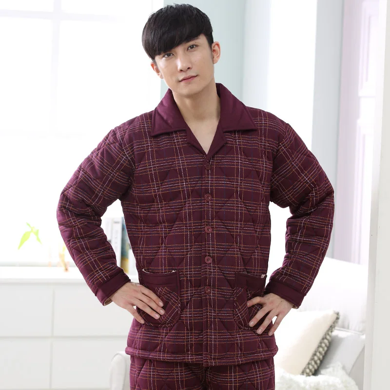 Buy Knit Cotton Three-Layer Quilted Pajamas Male Winter Thick Sleeping Pyjamas Set Long Sleeve Mens Plus Size L-3XL Plaid Night Wear and You will Save USD 0 or 0% %, Because You Just Pay for 71.42 not Full Price for 71.42