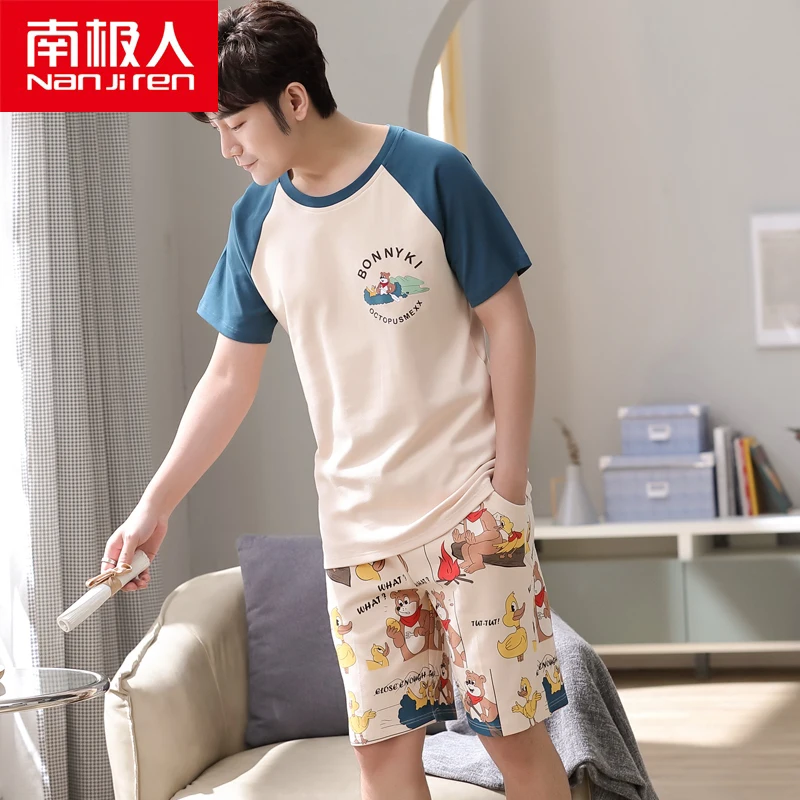 Special Price for NANJIREN Mens Pajamas Set Summer Home Casual Short Sleeves O-NECK Shirt Shorts Pajamas Set for Men Cartoon Sleepwear Set