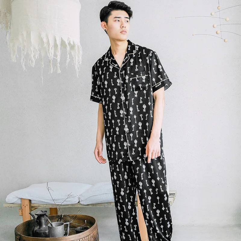Buy Pajamas New Products Silk Suit Printed Casual Short Sleeve Trousers Tracksuit Piece Men Summer Home Wear and You will Save USD 18.65 or 30% %, Because You Just Pay for 43.51 not Full Price for 62.16