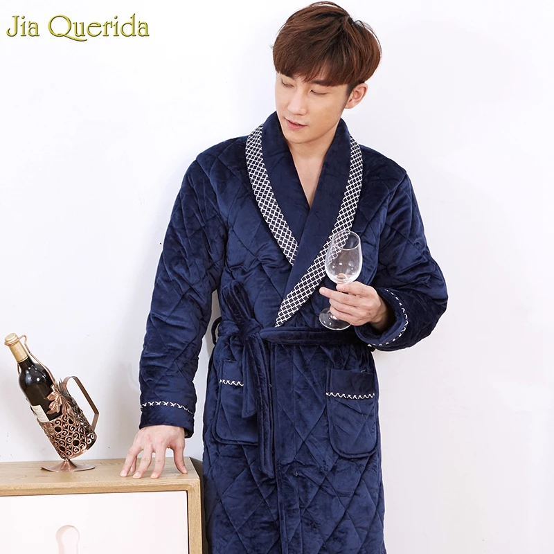Bathrobe Men Winter Sleeping Wear Velvet Fleece Thick Home Clothing Warm 3 Layer Velvet Kimono Royal Blue Plus Size Chinese Robe