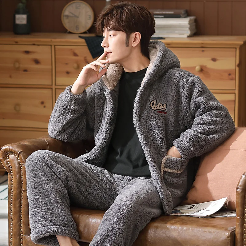 Pajamas Men's Winter Long-sleeved Coral Fleece Plus Velvet Thick Lamb Fleece Winter Warm Flannel Pijama De Hombre Invierno 2020